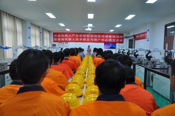 金忠豪表示,杭州龙盛与学校合作的多年时间里,双方合作共赢,积累了深厚情谊,此次龙盛机器人产业学院职业技能培训基地揭牌及磨抛机器人技术研发与推广中心成立,双方一定能站在新的起点上,发挥各自优势,实现“企业满意、学校满意、学生满意、家长满意”的多赢局面,结出产教融合协同育人的累累硕果,培育更多高素质技术技能型人才。