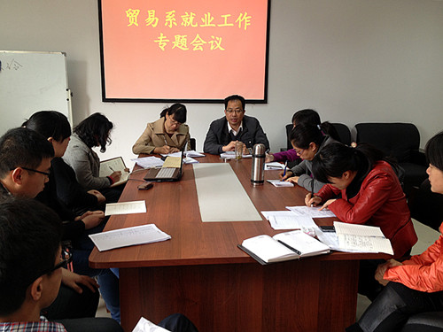 4月11日上午8:30,贸易系在实训楼会议室召开了2013届毕业生就业工作专题会议。会议由学院副院长傅建辉主持,贸易系党总支书记于遵萍老师,系辅导员、教学秘书、教研室主任、所有班主任出席了此次会议。会议主要对我系前一阶段的就业工作进行全面的了解和总结,并对接下来的工作进行研究和部署。