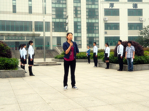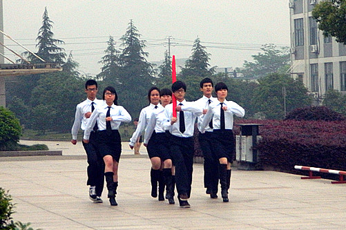 在初夏的早晨,同学们怀着崇高的敬意参加升旗仪式。七点整,七名国旗手身著笔挺的军装,迈着坚定地步伐,“出旗、立正、敬礼、升旗”国旗手把国旗向空中扬起。伴随着国旗缓缓上升,众人的视线也定格在国旗升旗的那一刻。全体同学在庄严肃穆的气氛中共同回忆历史,缅怀先辈。全体同学高昂的唱响义勇军进行曲,爱国精神在校园内回荡不绝。学生代表国旗下讲话。团委书记陶元发表演讲,她告诫同学们要传承历史,学习五四精神。并对同学们平时对爱国情意淡薄的行为做出批评。