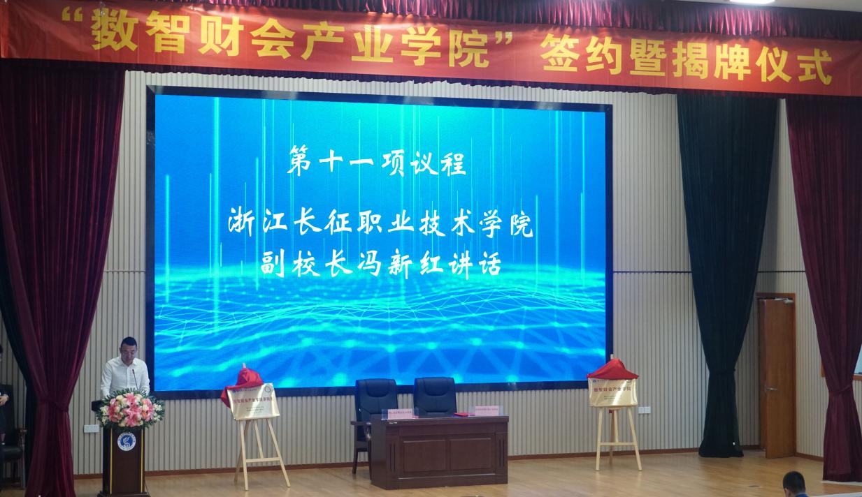 冯新红在讲话中指出,“数智财会产业学院”的成立是合作双方适应深化现代职业教育体系建设改革和职业教育高质量发展提出的新要求,是进一步推动产教融合、校企合作,促进职业教育高质量发展,培养高素质复合型财会类技术技能人才联手行动的有力举措。希望合作双方本着“平等互利、资源共享、共谋发展”的原则,立足杭州市,面向长三角区域一体化发展,以产业学院共建为抓手,推动行企校深度融合,推进学校专业建设、人才培养体系创新、高水平产教融合基地建设、社会培训与服务、师资能力提升等,打造基于数字经济财经新业态的产教融合协同育人模式,构建具有学校特色、区域一流的复合型数智财会人才培养体系,建立校企互助、学岗互通、校企联合培养的协同创新机制,为地方经济社会发展培养输送高素质复合型财会类技术技能人才。