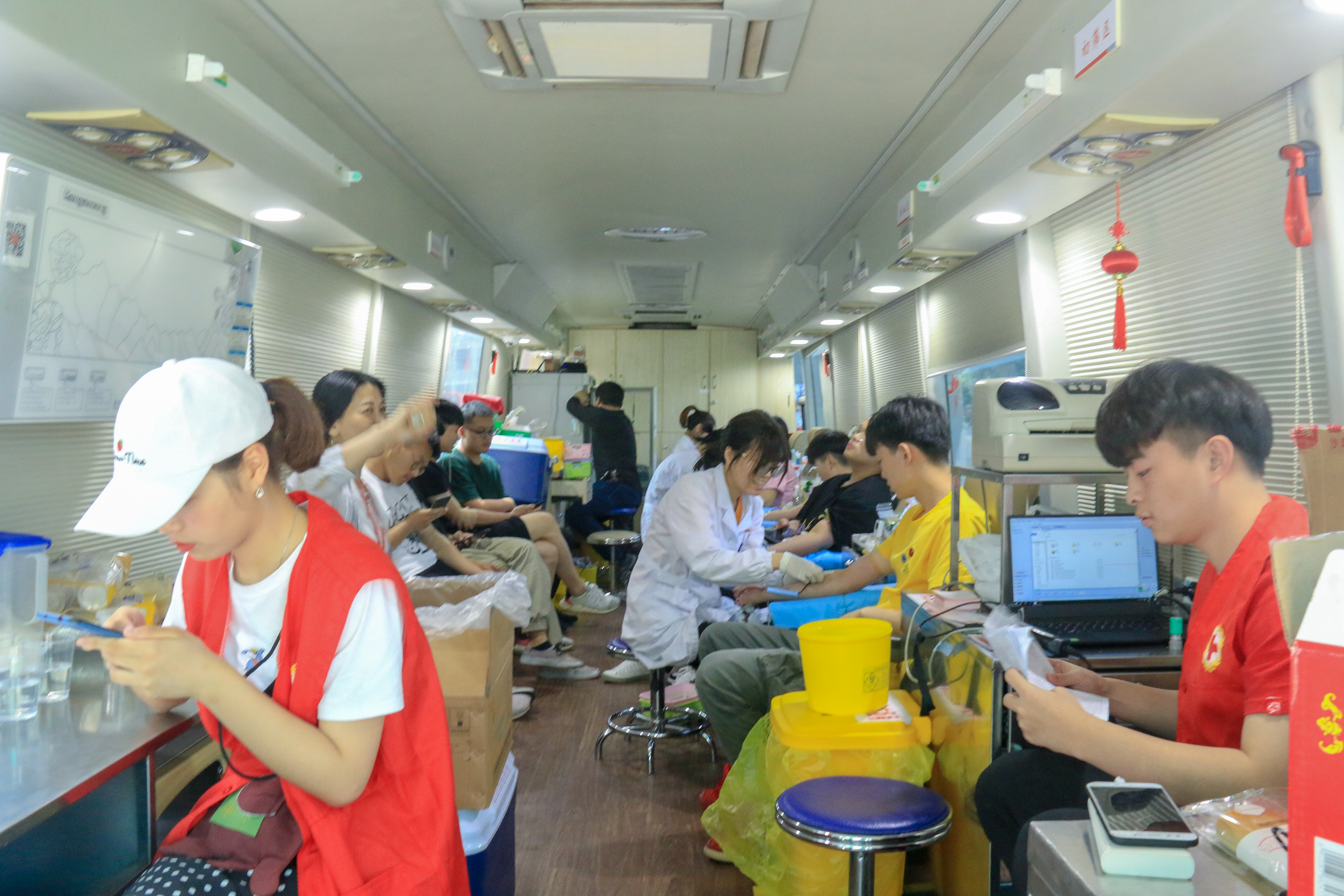 早上十点半开始,活动现场前来献血的志愿者络绎不绝。浙江省血液中心工作人员有条不紊地对献血者进行体格检查、身体健康检查、血样采集、血型鉴定,对符合献血要求的人员进行血液采集。
