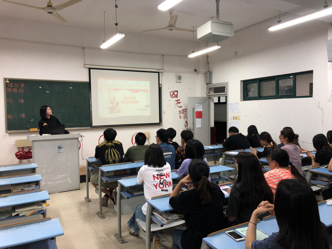 5月4日晚自习,商务系学生党支部组织党章学习小组集中学习《习近平:在纪念五四运动100周年大会上的讲话》和《五四青年精神宣传短片》,40多名培养考察对象参加学习。