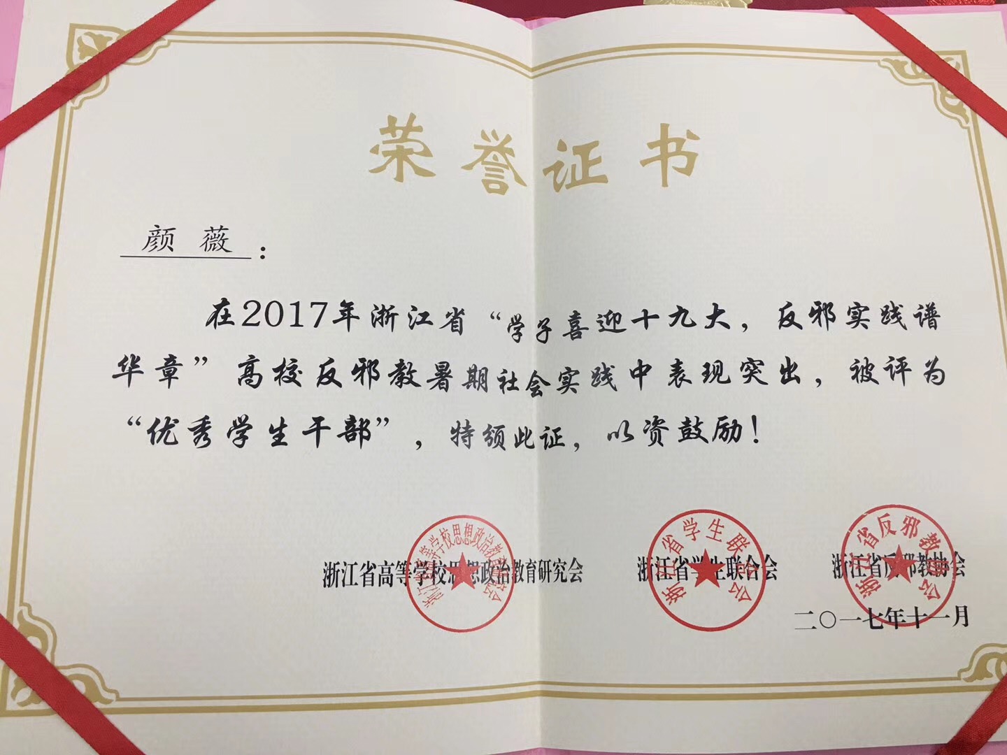 近日,浙江省高等学校思想政治教育研究会、浙江省学生联合会、浙江省反邪教协会三个组织联合为我院师生颁发了四个奖项,以奖励我院师生在暑期社会实践活动中的突出表现。