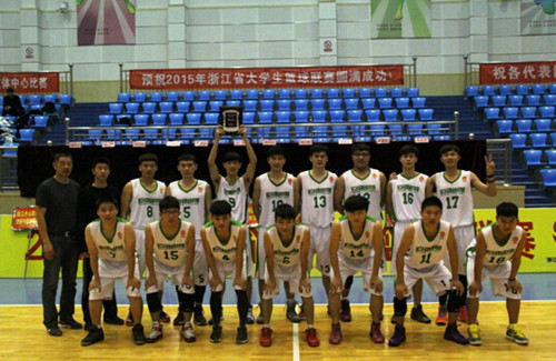 我校男篮由张自强老师担任领队,鲁陵老师担任教练。首日晚上长征男篮有幸作为揭幕战主队迎战浙江旅游职业技术学院男篮。随着裁判长的一声哨音2015年浙江省大学生篮球联赛男子专科乙B组的比赛拉开了帷幕。八天七场高强度的比赛,队员们比的不仅是技战术、体能,更拼的是意志品质、顽强的斗志、清醒的头脑及团队的合作。在比赛的过程中长征男篮有过波折也遇到过困境,但他们没有退缩,全队像一把利刃在长满荆棘的道路上披荆斩棘奋勇向前。在小组排名第三不利情况下,先后在四分之一决赛中战胜了另一小组的第二名浙江机电职业技术学院及在三四名比赛中战胜了另一小组的第一名杭州职业技术学院。最后为母校,也为自己的篮球生涯添上了浓墨重彩的一笔,荣获季军。
