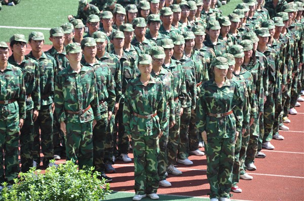 军训会操大会仪式在激昂的中国人民解放军进行曲中结束。