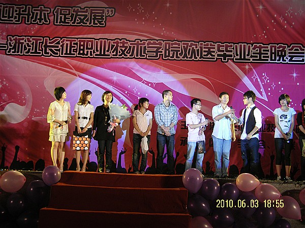 为了促进我院师生以崭新的精神风貌迎接美好的未来。2010年6月3日晚,我院在体育馆举办了“迎申本,促发展”——浙江长征职业技术学院欢送毕业生晚会。学院副院长贺旭辉教授、副院长王其军教授、院长助理杜丹副教授、人事处处长黄涛、学生处处长刘东副教授、副处长陈楠荪、学生处副处长兼团委书记陶元以及各系部等领导及部分师生出席了晚会。
