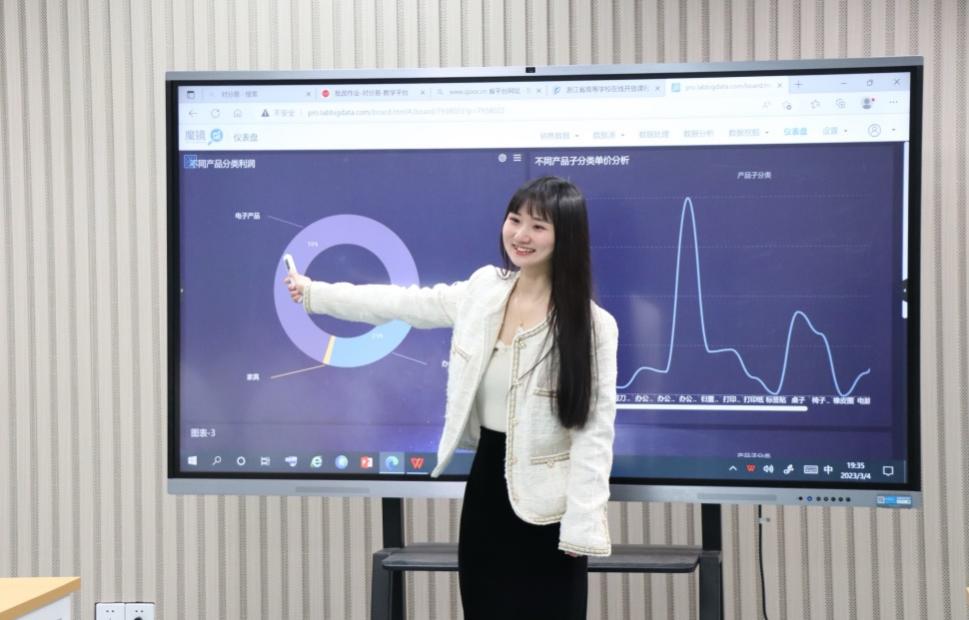 本次备战工作由王丹琦、张俊霞、王丹和吴爱峰组成的教学团队通过拍摄教学视频方式进行,几位老师分别以《大数据与中小微企业统计实务》《大数据清洗》《统计指标》作为竞赛主题。王丹琦老师通过职场案例,围绕如何选取合理的数据源进行数据采集、如何选取图表类型进行数据可视化以及如何对可视化结果进行分析决策重点展开。张俊霞老师的课程围绕为什么要进行大数据清洗、如何进行大数据清洗、大数据清洗的最终目标进行展开,重点和难点是大数据清洗的方法技能。王丹老师通过案例教学及同学们的讨论发言观点,引申出极差这个变异指标展开授课。