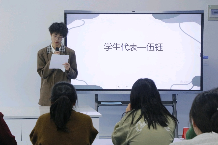 伍钰作为学生代表发言,他表示寝室是我们生活中不可或缺的一部分,是我们学习和生活的重要场所。建设一个美好的‘小家’需要从我们自身做起,优美整洁的寝室环境靠大家用双手去打扮和维护,团结友爱的寝室人际关系靠大家用心去付出和培育,积极健康向上的寝室文化靠大家用美德和智慧去营造和发展。我们会把小家建设得更温暖、舒适。