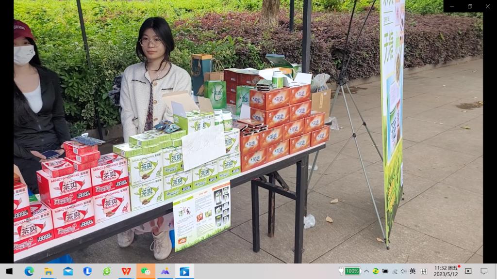 在5月11日的线下实战环节,同学们采用了多种创新的营销方式,向大家推销蛋糕、休闲零食、现制饮料、鲜花、洋娃娃、茶爽糖、现制水果拼盘、香水、手工装饰品、鞋类等产品,为营造良好的销售氛围,各参赛队伍或自己设计了宣传海报,或定制了宣传展架,或在展台布置了装饰物,或开展抽奖活动,或由学生扮演的网红吉祥物招揽顾客,可谓是“八仙过海,各显神通”。在线上环节,同学们提前开展了短视频营销、微信朋友圈营销、淘宝店铺营销等活动。通过前期的策划、预热和当天的销售,各组均顺利完成任务。
