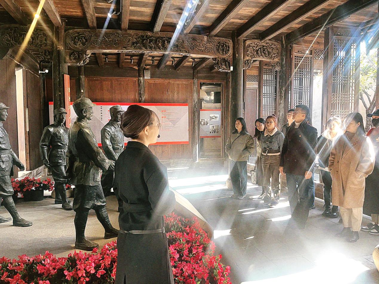 在纪念馆内,跟随着讲解员深情并茂的讲解,党员师生们循着革命先辈的红色足迹,在各种老照片、文献资料以及历史文物中,了解新四军苏浙军区在抗战时期的英勇事迹,重温苏浙军民在粟裕将军领导下抗击日伪、建立苏浙解放区的重要历史。