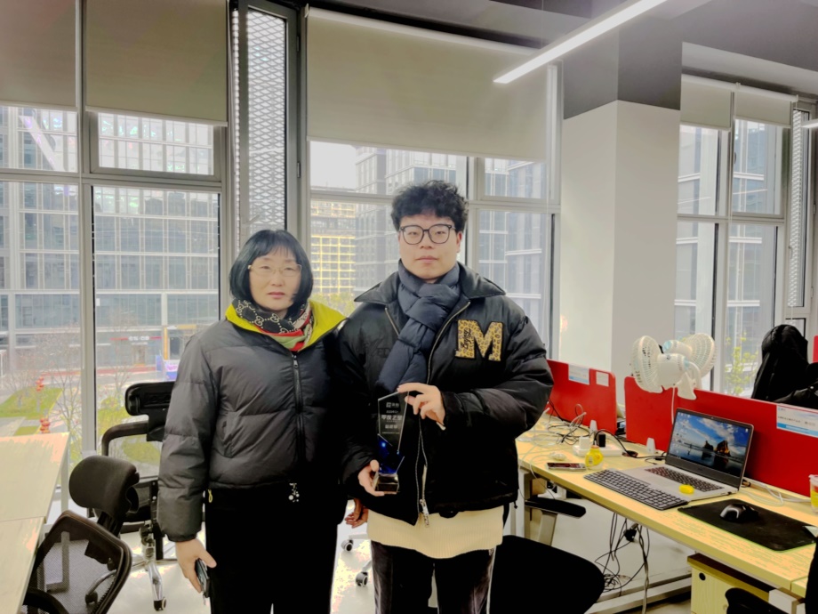 访企期间,应以峰带领大家参观了公司的办公室、研发实验室等场所,并向大家介绍了公司发展历程、企业文化、业务范围及近年来取得的主要成果,对公司招聘岗位进行了重点介绍。应以峰对我校实习生杨程翔的工作表现给予了充分肯定,高度赞赏他踏实肯干、虚心好学,被授予了“美创季度之星”荣誉称号。