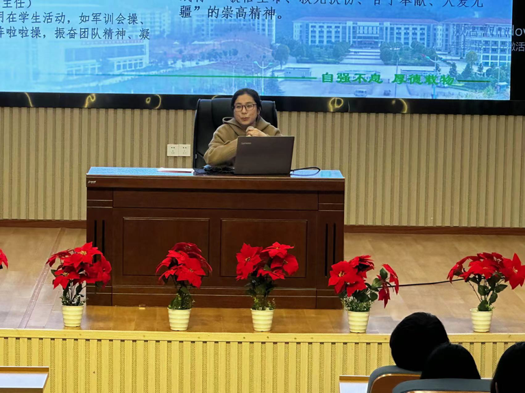 蒋霄蕊介绍了此次培训班的相关课程内容及制度,强调了培训纪律和注意事项,要求团学干部们,加强团队凝聚力,时刻保持高度的自律性。团总支副书记徐轲作为优秀学生代表发言,她号召全体团学干部,要拥有责任感,发挥表率作用,努力认真的完成各项任务,将个人梦想融入集体。