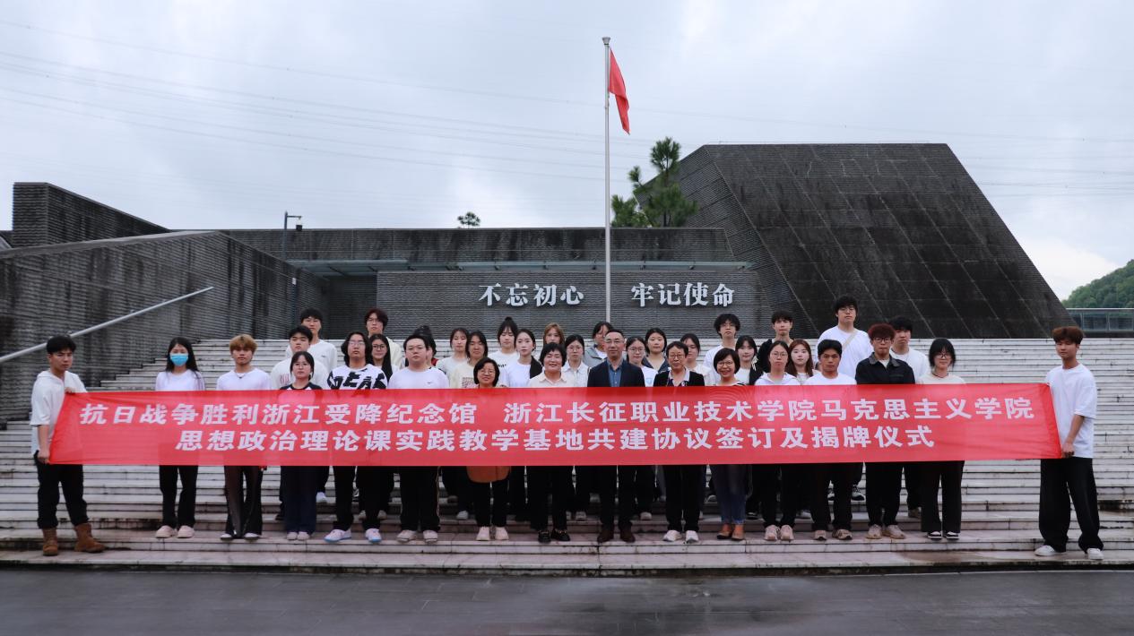 为深入贯彻落实习近平总书记关于“大思政课”建设的重要指示批示精神,构建马克思主义学院“大思政课”工作格局,4月2日,学校马克思主义学院与抗日战争胜利浙江受降纪念馆共建思想政治理论课实践教学基地协议签订及揭牌仪式在抗日战争胜利浙江受降纪念馆举行。富阳区文物保护中心主任章新波、抗日战争胜利浙江受降纪念馆负责人张媛、马克思主义学院院长王华出席了仪式。富阳区文物保护中心、抗日战争胜利浙江受降馆工作人员、马克思主义学院思政课教师和学生代表参加了仪式,仪式由我校习近平新时代中国特色社会主义思想概论教研室主任张红星主持。