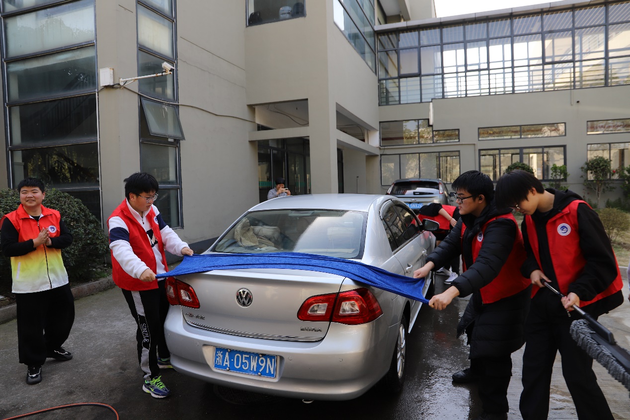 为进一步弘扬雷锋精神,树立文明新风尚,近日,智能技术学院在学校汽车实训室门口举行“师恩报于行,爱车焕一新”的洗车志愿服务活动。