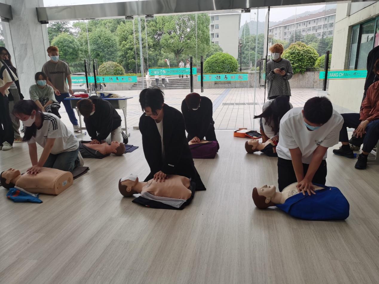 培训以线上理论课程和线下实践课程相结合的方式展开。通过线上课程的预先学习,大家初步了解了安全突发事故自救、互救知识。线下实践培训内容主要包括创伤处置、止血包扎、常见意外应对措施、海姆利克急救法以及心肺复苏等。培训时,大家相互配合,积极练习。在专业人员的指导下,同学们分组进行了心肺复苏的模拟操作。培训专家从步骤规范、动作要领、注意事项等方面对师生进行了一对一指导和纠正,确保每一位学生都能做到正确规范操作。