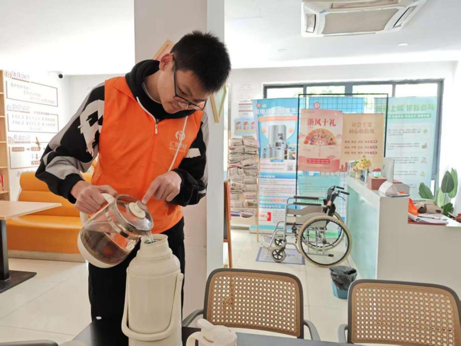 晨光微露,志愿者们便早早抵达服务中心。他们有条不紊地更换隔夜饮水、仔细擦拭整理台面,不放过任何一个角落,只为给长者们营造出干净整洁、温馨舒适的生活环境。