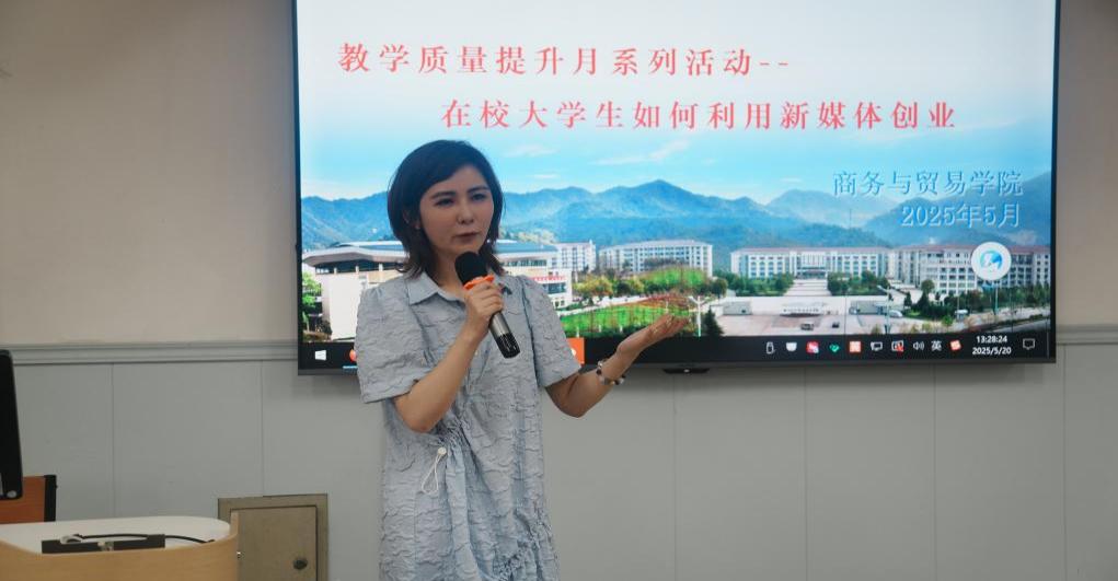 为助力商贸学子把握新媒体创业机遇,激发创新创业潜能,在数字化浪潮中更好地实现创业梦想,近日,商务与贸易学院联合留下汇峰国际跨境电商产业园区共同举办了“在校大学生如何利用新媒体创业”主题的讲座。产业园区总经理沈琳、副总经理陶妙燕、新媒体运营负责人常浩、杭州水梵猫文化创意策划有限公司总经理沈谊宇出席活动。