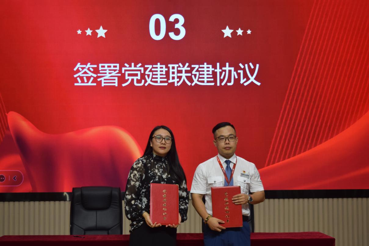 佟珊珊汇报了党建联建背景与筹备情况。她表示,双方始终秉持“互联共建、互助共赢”的合作原则,通过前期调研和沟通,确定通过组织互建强根基、党员互动亮身份、活动互联聚合力等方式,推动党建工作与业务发展深度融合,实现校企资源共享、优势互补。。